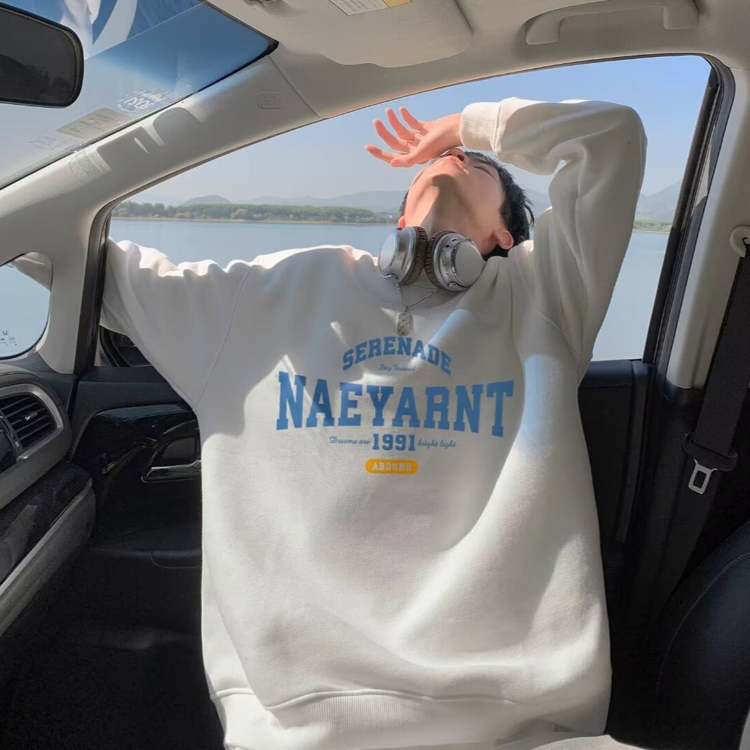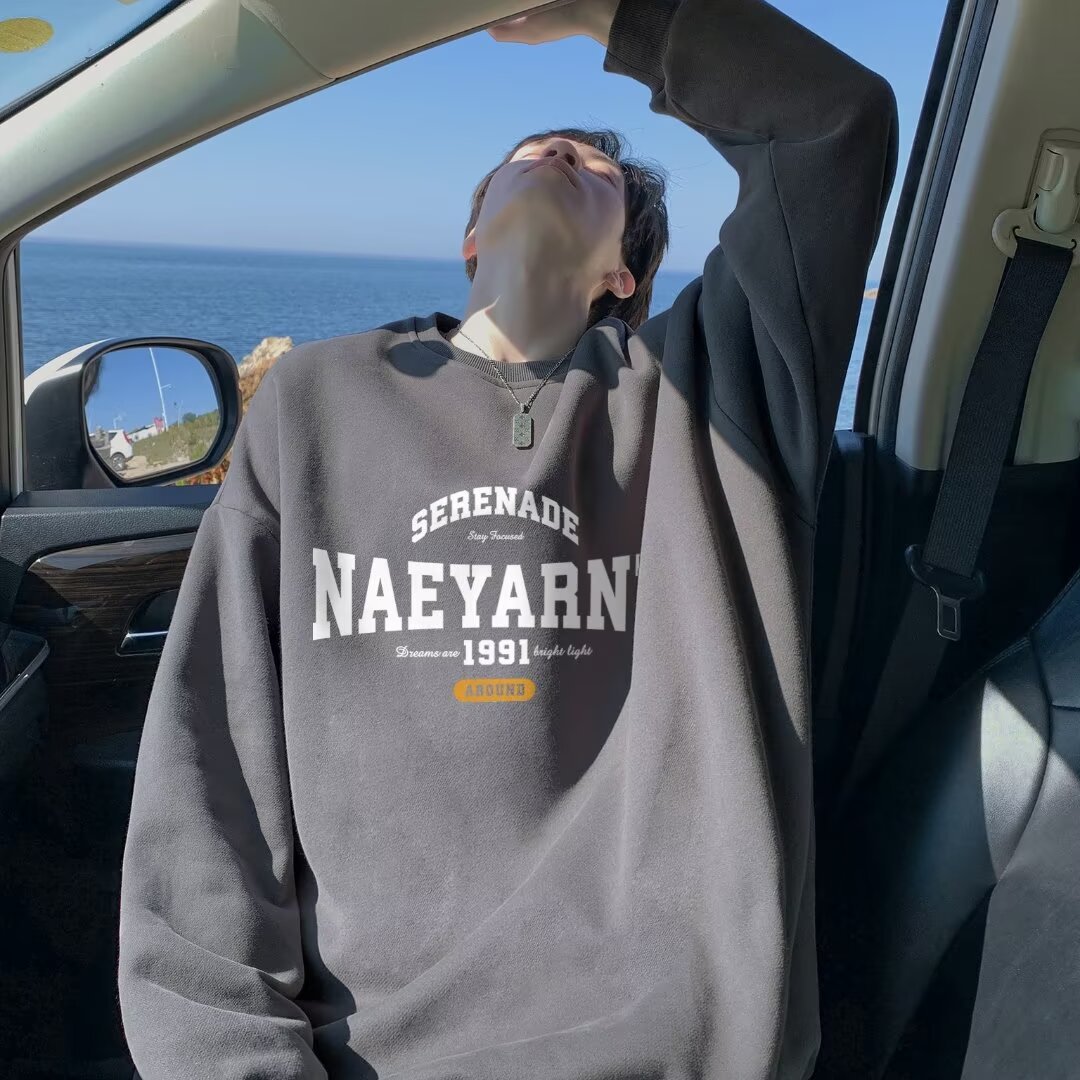 New Mens Loose Fitting Long Sleeve Crew Neck Top